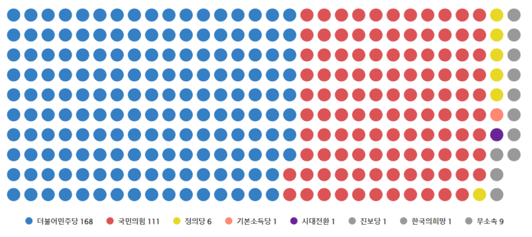 현재 21대 국회의원은 총 298명으로 약 300명입니다. 의석수는 현재 더불어민주당이 168석으로 야당이지미나, 가장 많은 의석수를 차지하고 있습니다. 반면에 국민의 힘은 111석으로 여당임에도 두번째로 많은 의석수를 가지고 있습니다.