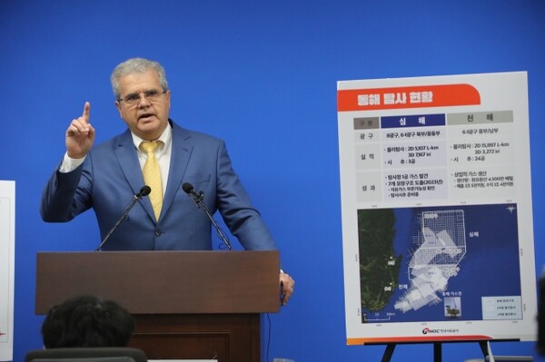 '세계 최고 수준의 심해 기술 평가 전문 기업인 미국의 액트 지오(Act-Geo) 사에 심층 분석을 맡겼으며, 최대 140억 배럴에 달하는 석유와 가스가 매장돼 있을 가능성이 매우 크다는 검사 결과가 나왔다고 합니다.